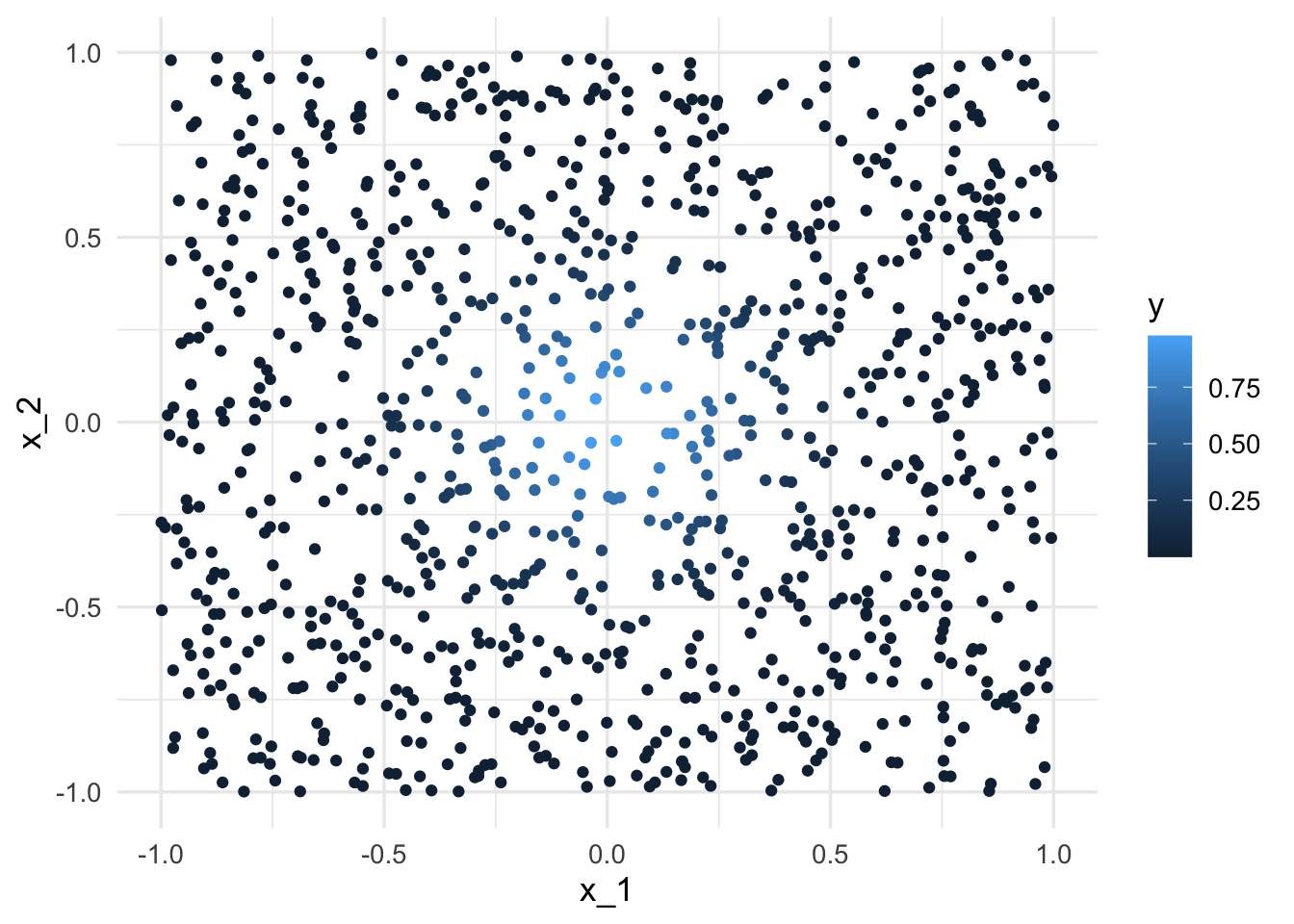 Consideramos el siguiente ejemplo de (Hastie, Tibshirani, and Friedman 2017) de un problema de predicción determinístico:
