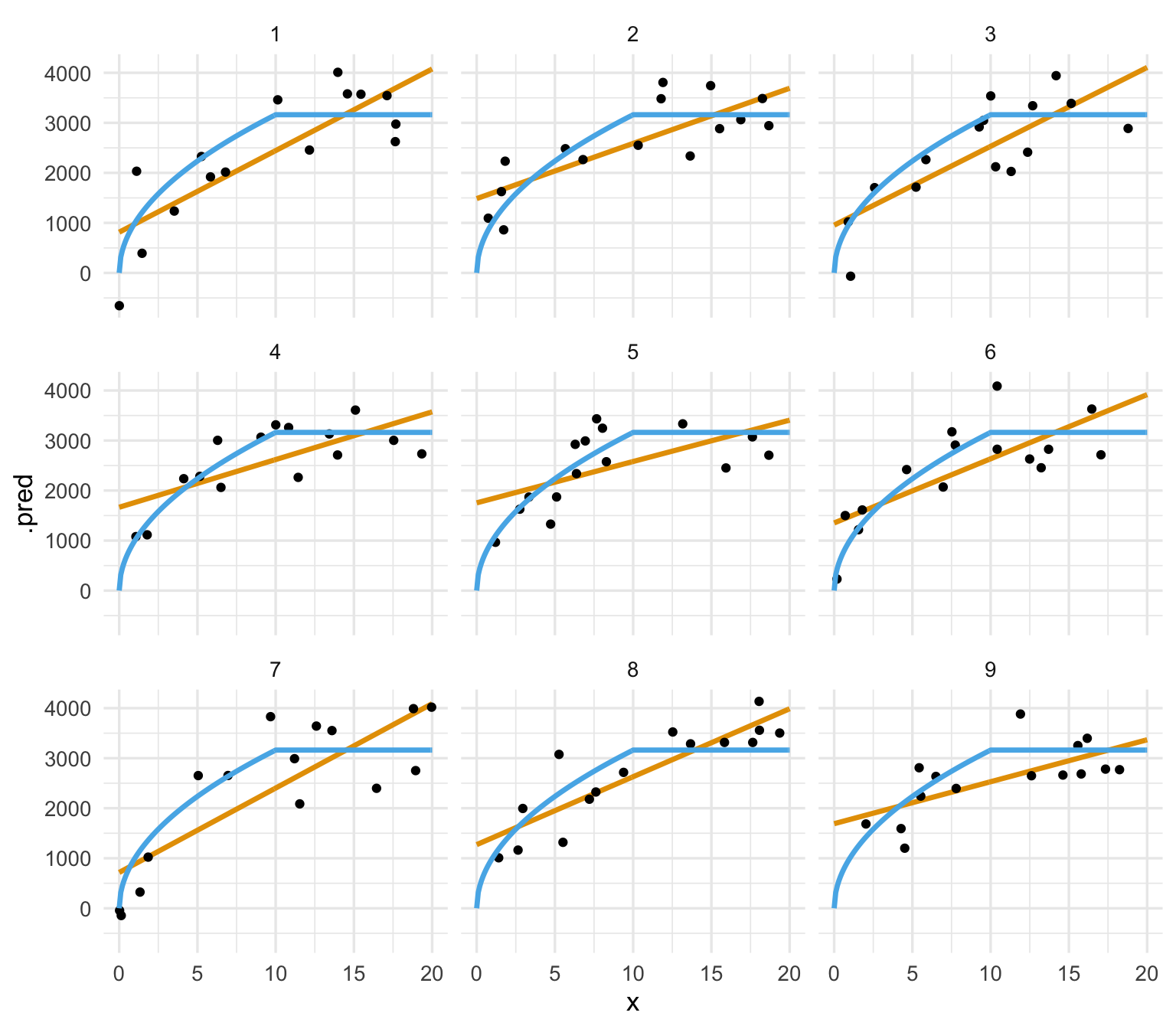 geom_line(aes(x =x, y = .pred, group = rep), colour = "#E69F00", size = 1.2) +